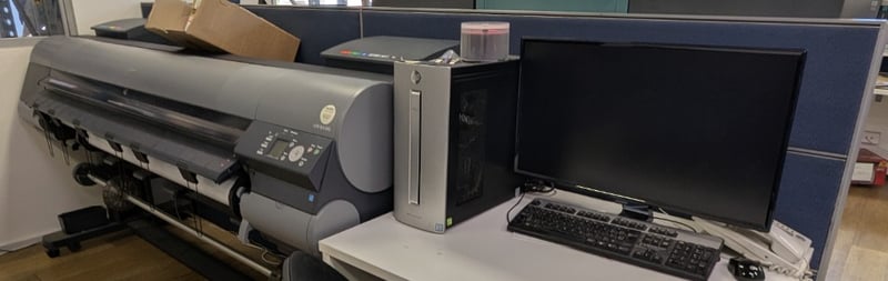 Tower PC and Large Format PrinterIncluding HP Envy Core i7 tower PC, S/N: 4CE5450HZB, Samsung S27E390H 27" W-LED monitor, DOM: 01/16, S/N: 0LUUHTHH100040Z, HP USB keyboard and HP wireless mouse Canon imagePROGRAF iPF9400, 60", 12-colour inkjet, 2400x1200dpi, mobile, S/N: AAHW0040Note: Untested