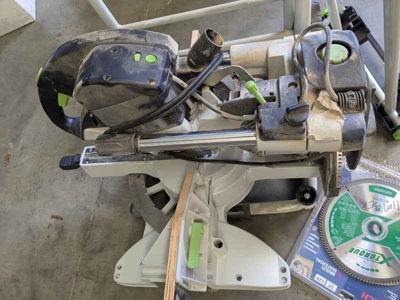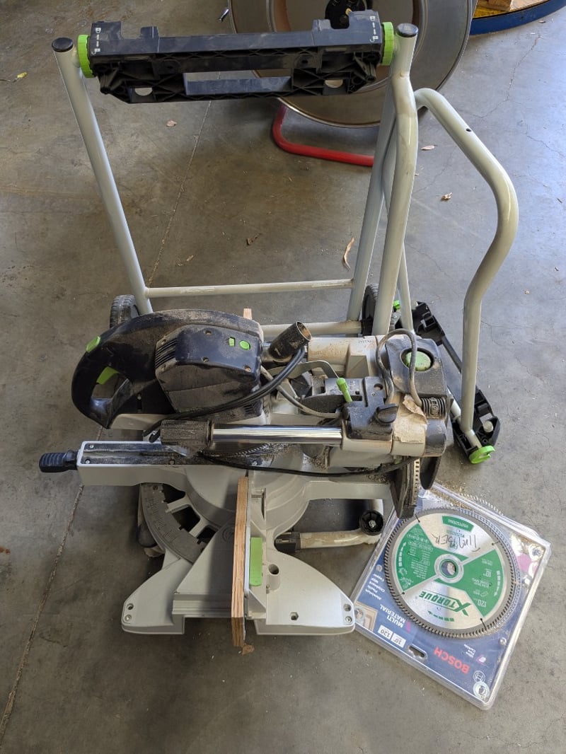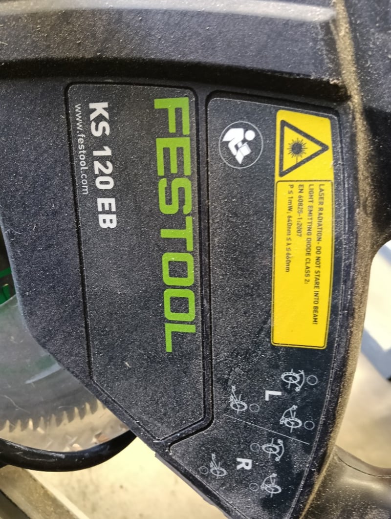 Festool Kapex KS120EB, 260mm dia. blade, 1600W, DOM: 2015, S/N: 40041162, 5400mm with Festool UG-KAPEX KS 120 mobile saw trolley/stand