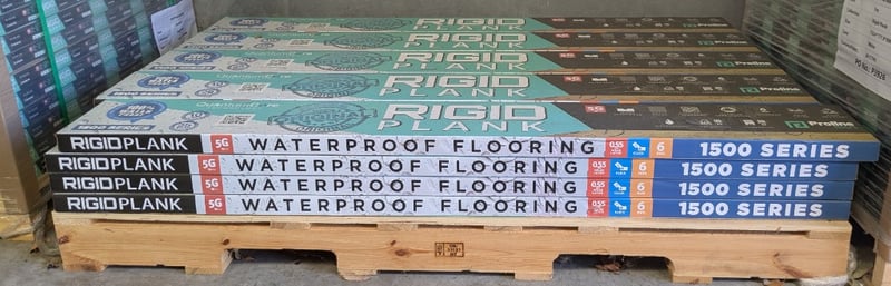 Rigid planks, Carlisle design, matt embossed finish. 6 boards per carton, 20 cartons per lot. Refer to photo for dimensions and specifications.