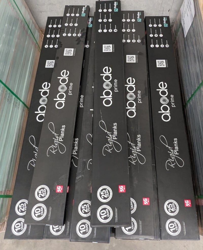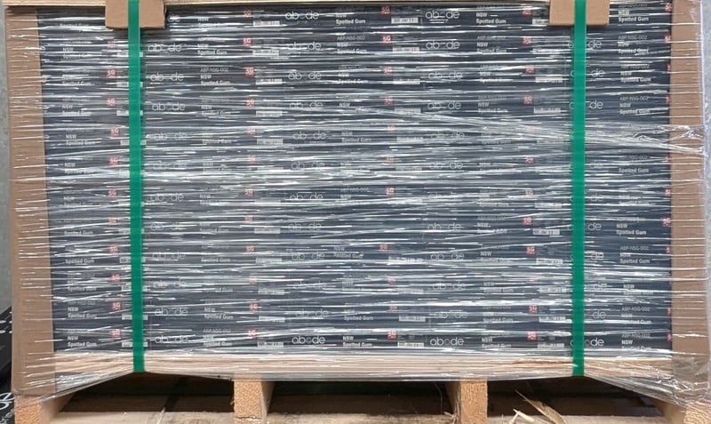 Rigid planks, Abode prime, NSW Spotted gum design, polyurethane finish. 6 boards per carton, 60 cartons per lot.