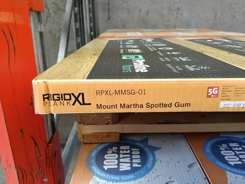 Rigid Plank XL, PUR Matt Embossed Finish, 5x Boards per Carton, Qty 3x Cartons of Mount Martha Spotted Gum & 32x Cartons of Palm Springs, Refer to photo for dimension & specificationsSold as lot