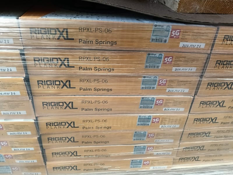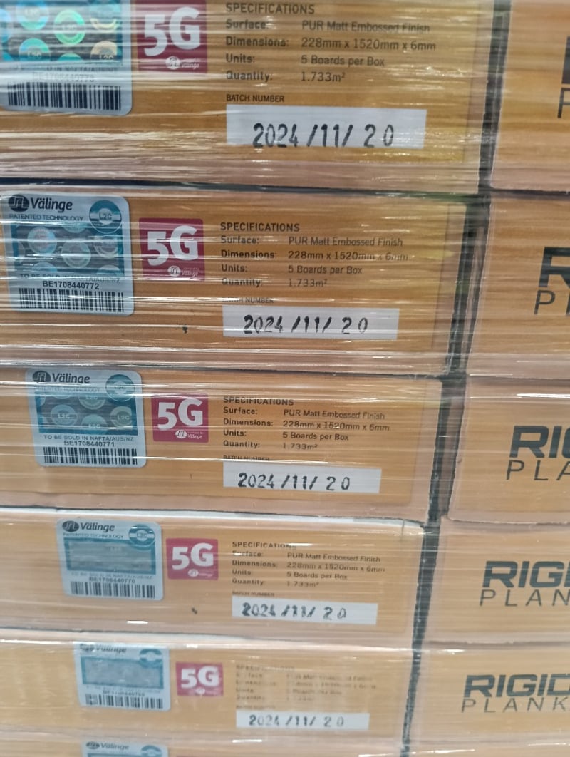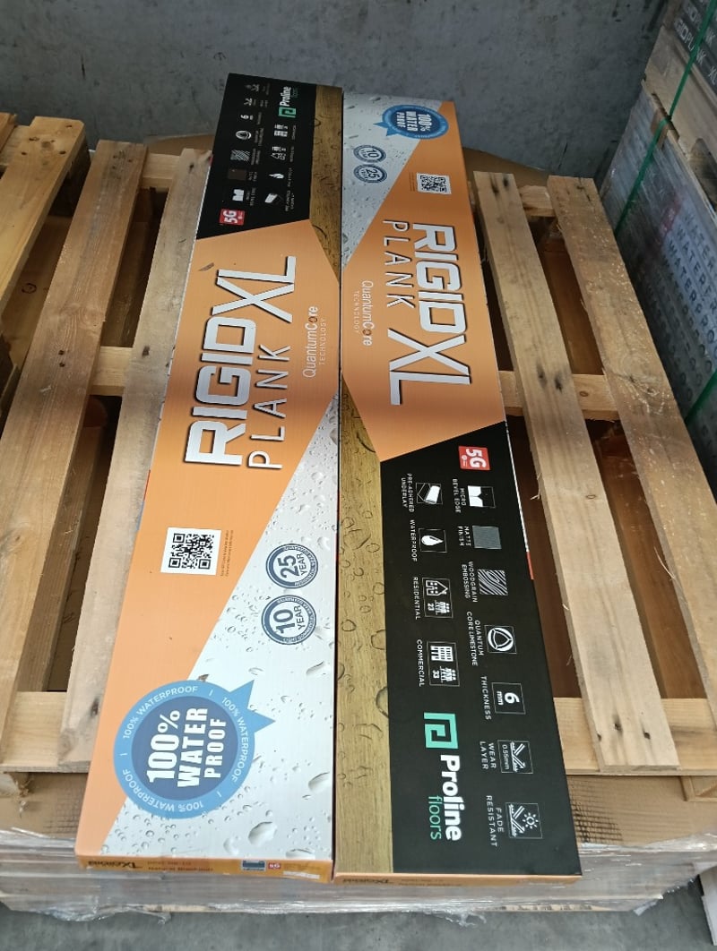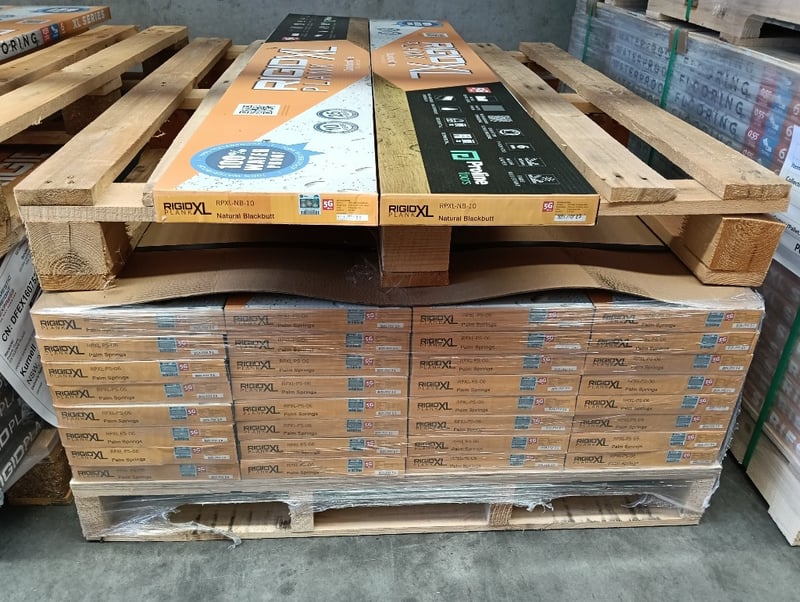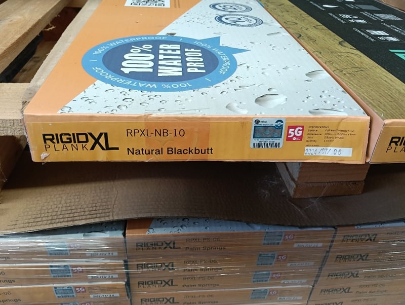 Rigid Plank XL, PUR Matt Embossed Finish, 5x Boards per Carton, Qty 2x Cartons of Natural Blackbutt & 32x Cartons of Palm Springs, Refer to photo for dimension & specifications