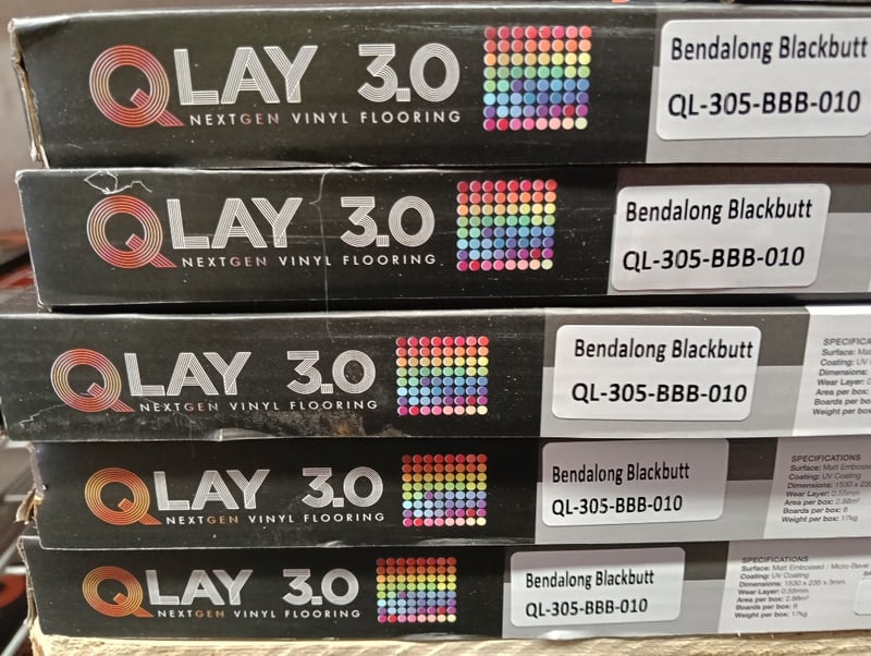 QLay 3.0 Vinyl Flooring, Matt Embossed/Micro-Bevel Edge, 8x Boards per Carton, Qty 23x Cartons of Bendalong Blackbutt, Refer to photo for dimension & specifications