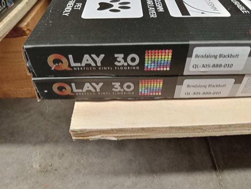 QLay 3.0 Vinyl Flooring, Matt Embossed/Micro-Bevel Edge, 8x Boards per Carton, Qty 10x Cartons of Bendalong Blackbutt, Refer to photo for dimension & specificationsNote: One carton of Bendalong Blackbutt has been opened, but the contents remain intactSold as lot