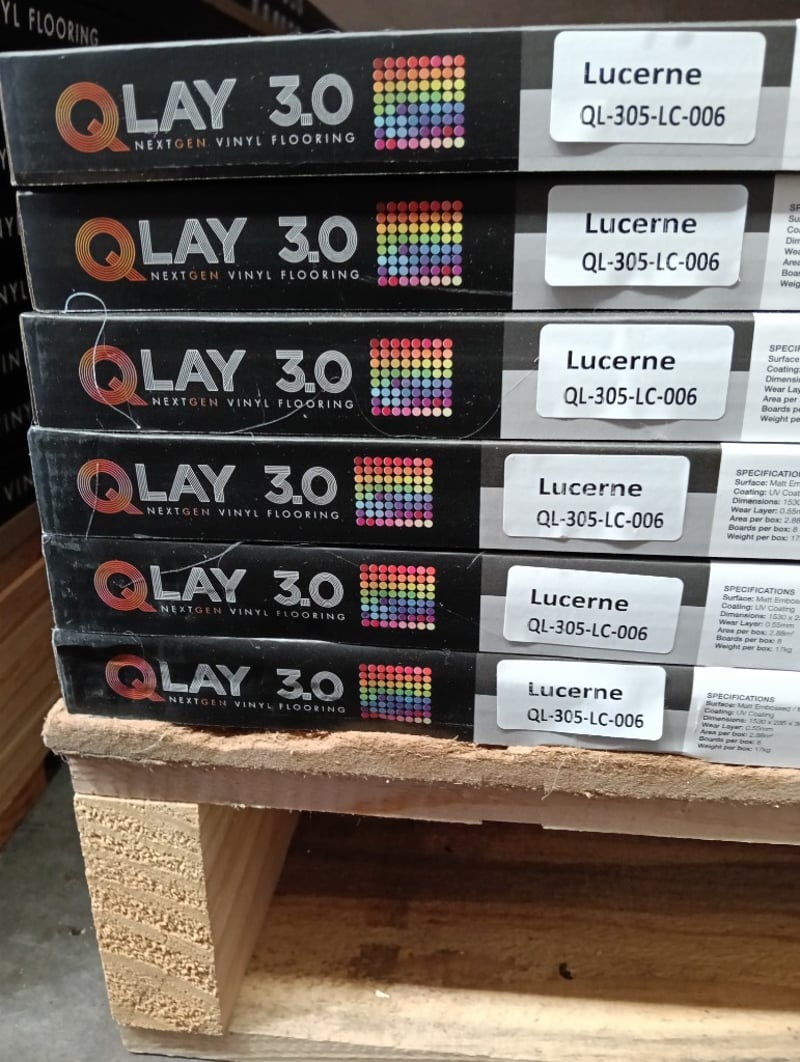 QLay 3.0 Vinyl Flooring, Matt Embossed/Micro-Bevel Edge, 8x Boards per Carton, Qty 24x Cartons of Lucerne, Refer to photo for dimension & specificationsSold as lot