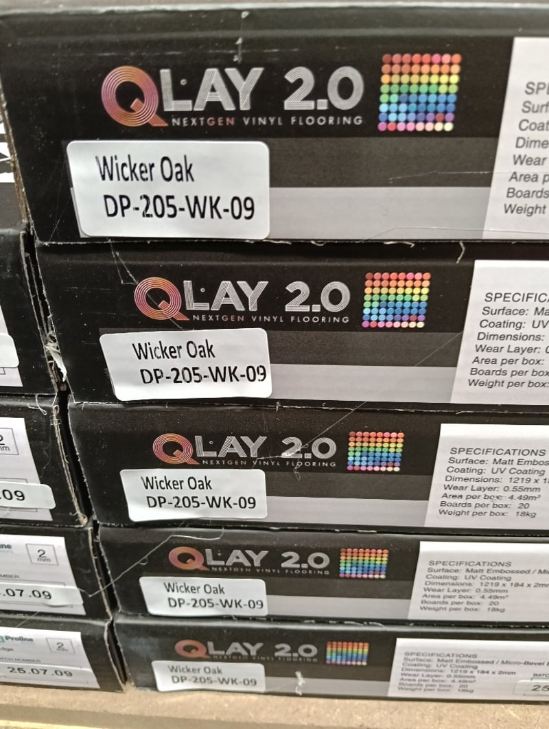 QLay 2.0 Vinyl Flooring, Matt Embossed/Micro-Bevel Edge, 20x Boards per Carton, Qty 24x Cartons of Wicker Oak & 1x Carton of Valencia Oak, Refer to photo for dimension & specifications