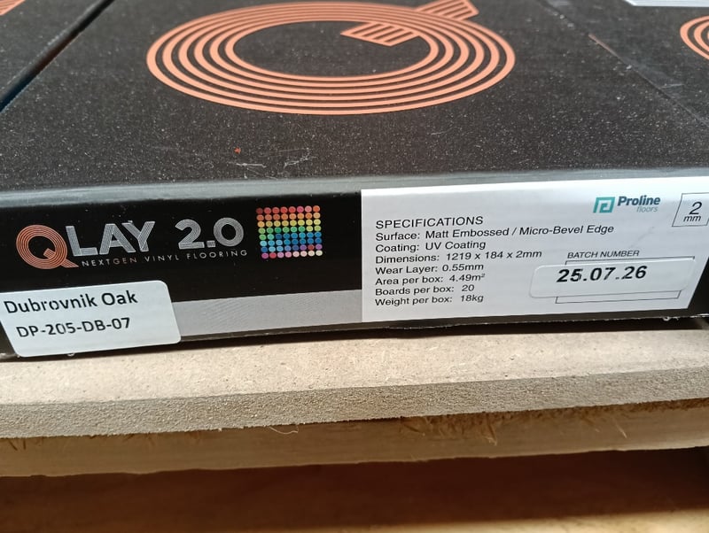 QLay 2.0 Vinyl Flooring, Matt Embossed/Micro-Bevel Edge, 20x Boards per Carton, Qty 5x Cartons of Dubrovnik Oak, Refer to photo for dimension & specificationsSold as lot