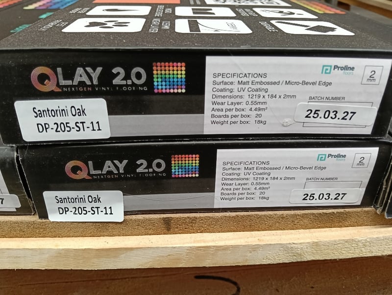 QLay 2.0 Vinyl Flooring, Matt Embossed/Micro-Bevel Edge, 20x Boards per Carton, Qty 6x Cartons of Santorini Oak, Refer to photo for dimension & specificationsSold as lot