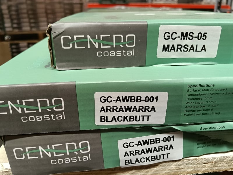 Cenero Coastal Floor Planks, Matt Embossed, 6x Boards per Carton, Qty 67x Cartons of Arrawarra Blackbutt & 1x Carton of Marsala, Refer to photo for dimension & specificationsSold as lot