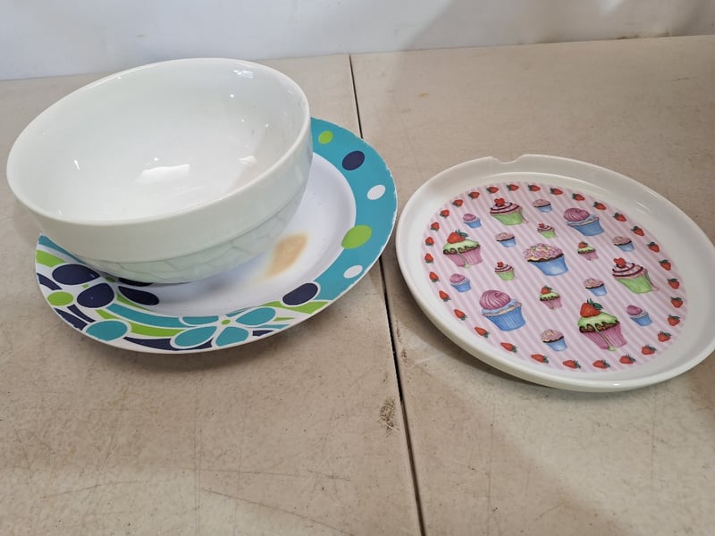 Assorted Catering Lot Includes 12oz Foot Of Ale, Sink Top Strainer, Bowls, Plates & Glasses SOLD AS LOT