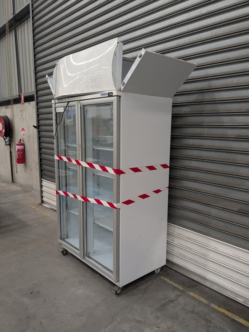 Commercial Fridge, Unknown Brand/ Model, White, 4 Shelves. Approx Dimensions- 120W X 177 H x 70D Quantity- 1