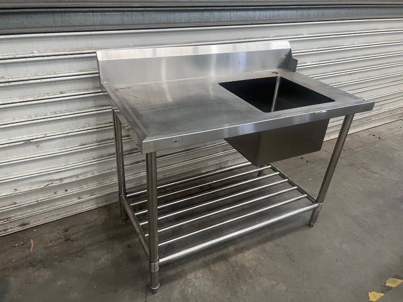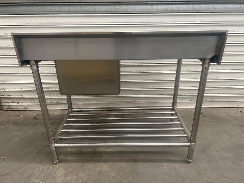 S/S inlet bench with sink, unknown brand/ model, stainless steel, freestanding Dimensions approx; 122W x 70D x 105.5H cm