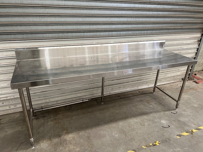S/S bench with splashback, simply stainless, unknown model, stainless steel, freestanding