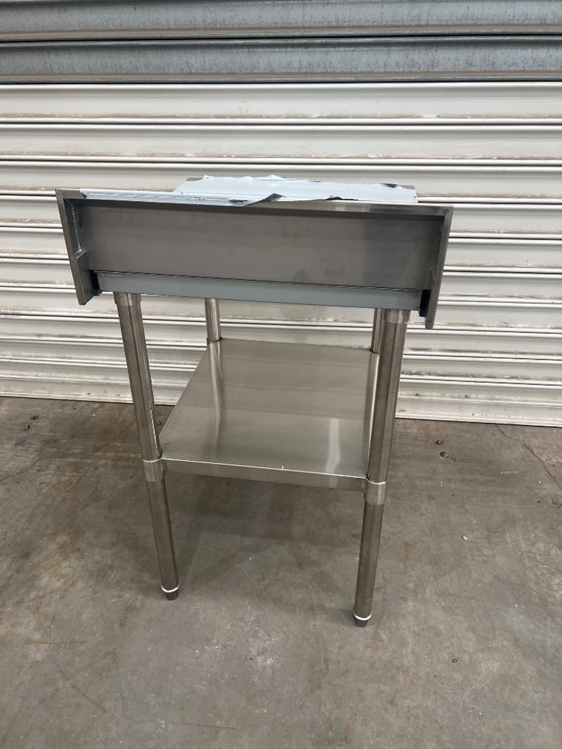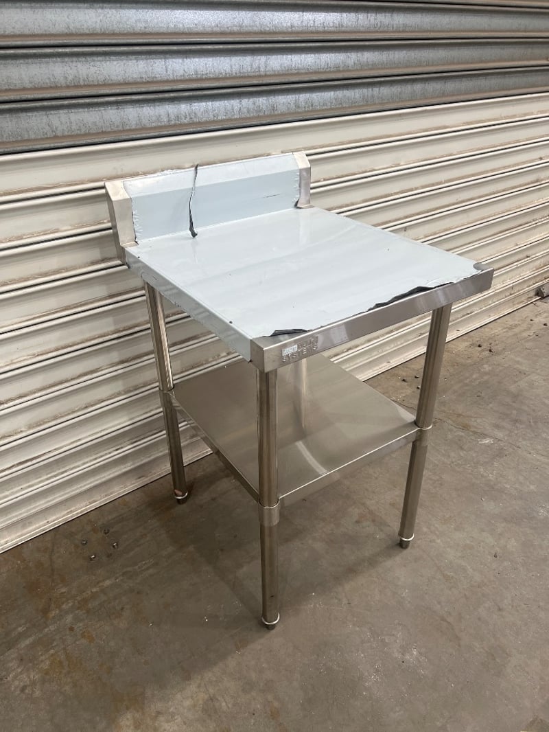 S/S bench with splash back, Modular systems, unknown model, serial; DPO-02085-2, stainless steel, freestanding