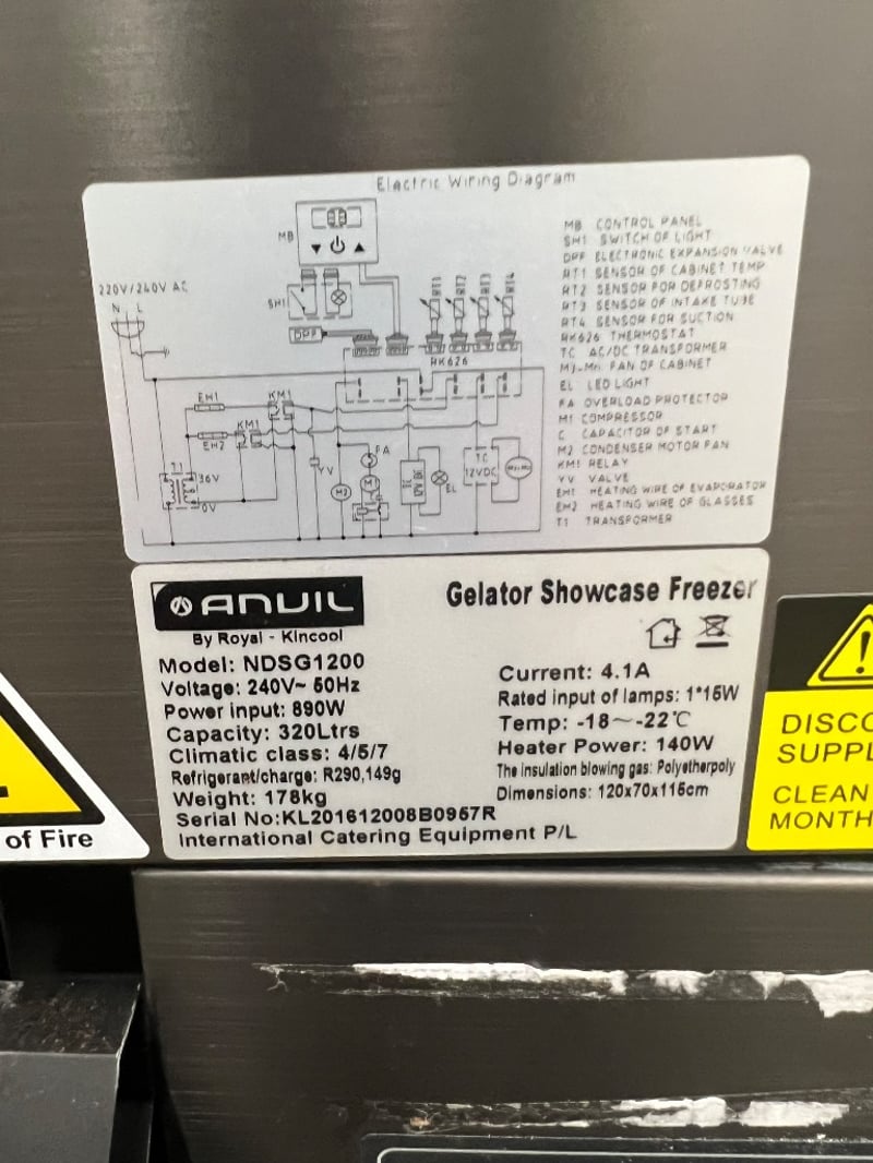 Gelato display/freezer, Anvil, NDSG 1200, serial; KL201612008B0957R, 2 door, blackDimensions approx; 120W x 70D x 115H cm