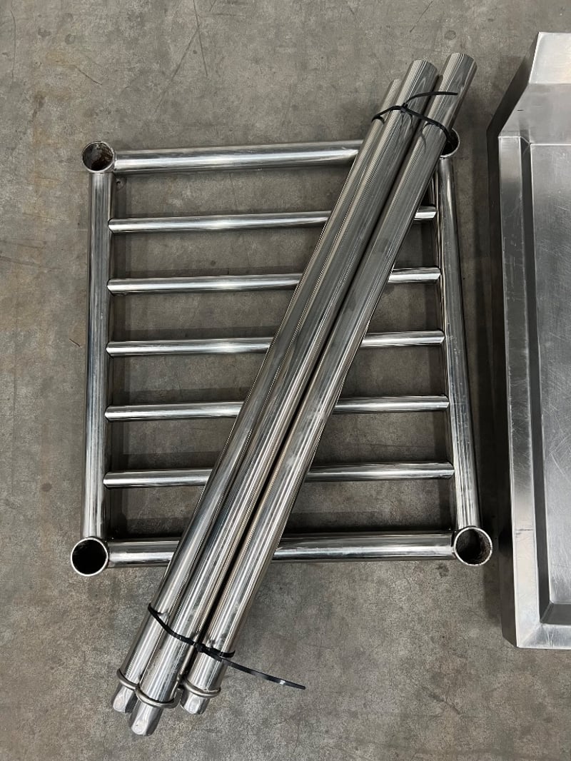 Outlet bench, unknown brand/ model, stainless steel, freestanding