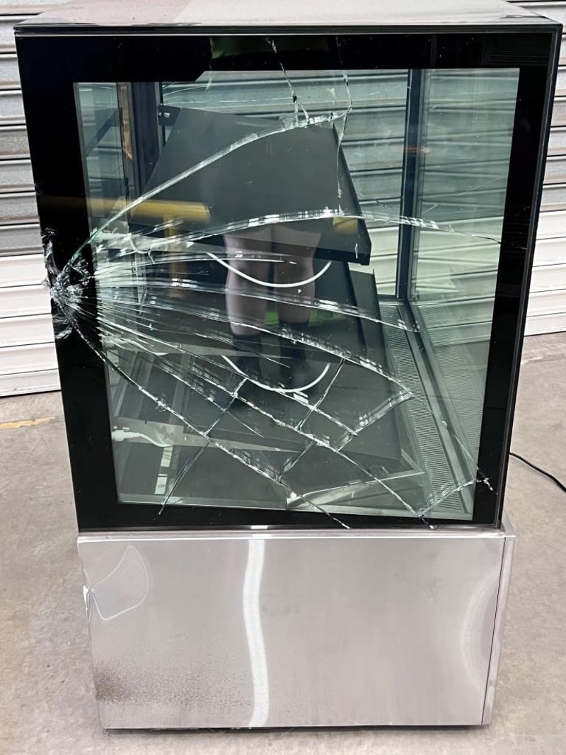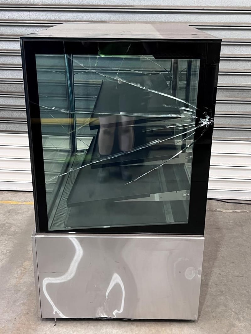 Refrigerator, Topaz, HTCFH12-HA, serial; 99400, Cake Display, 2 Doors, stainless steel, glass damaged