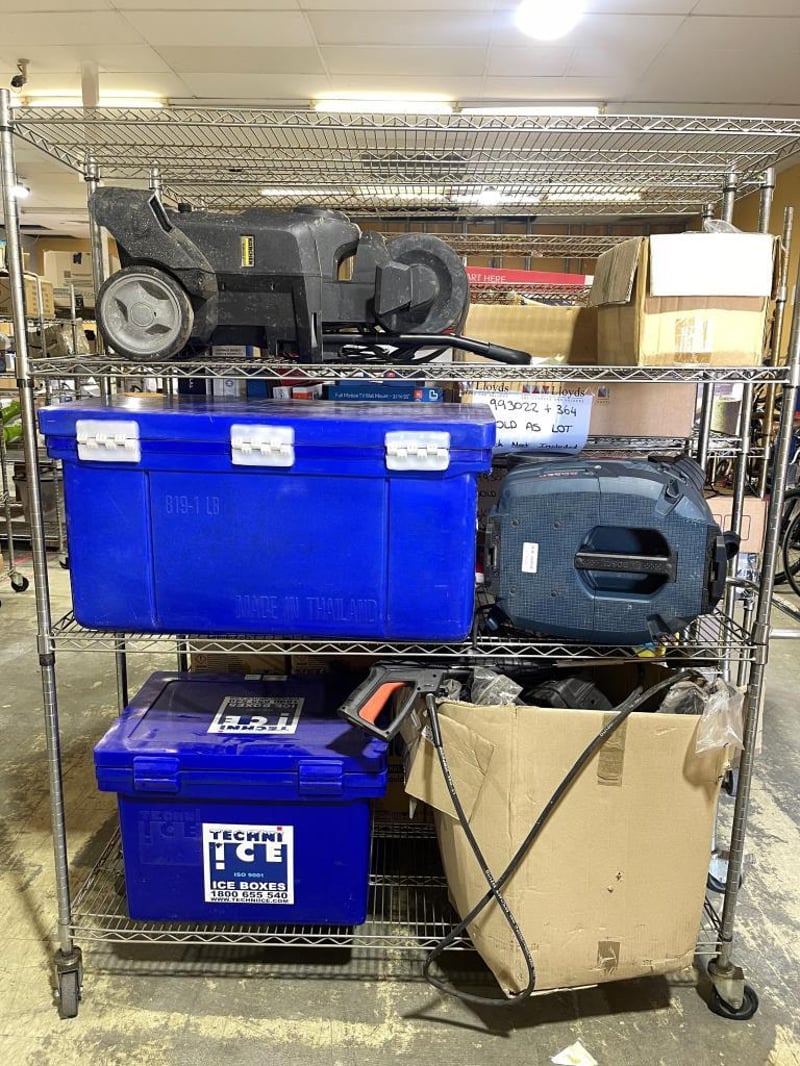 Assorted Tool Lot Includes x2 Storage Containers, Bosch Wet & Dry Dust Extractor & More PLEASE NOTE: Items Are Untested RACK NOT INCLUDED SOLD AS LOT