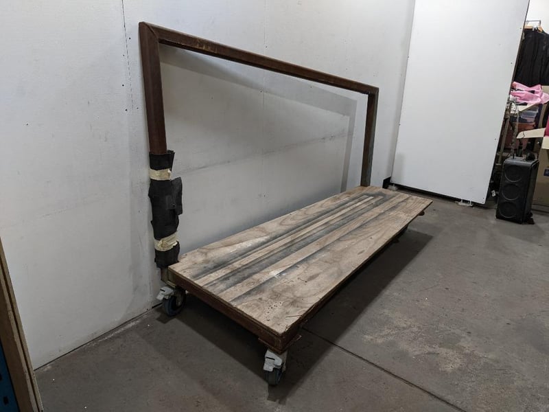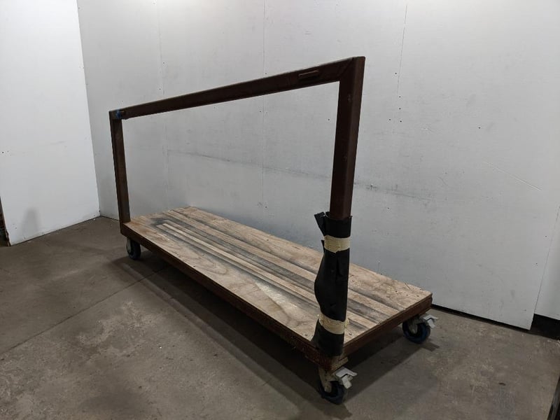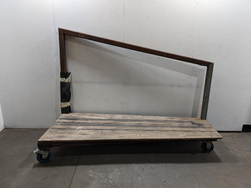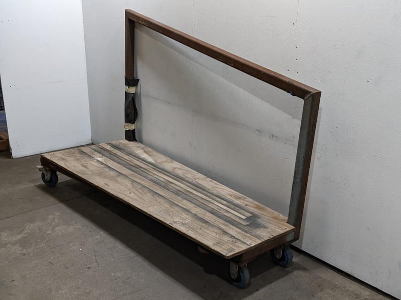 Heavy-Duty Custom Rolling Cart, Sturdy Wooden Platform, Angled Metal Frame, Four Caster Wheels