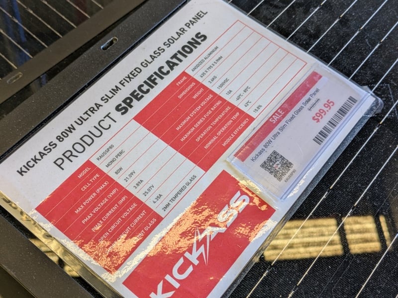 RRP$129 12V 80W Ultra Slim Fixed Glass Solar Panel