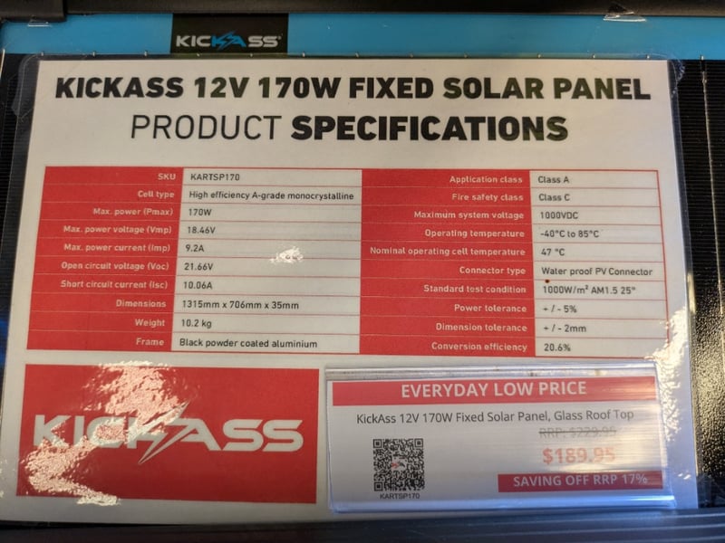 RRP$229 - 12V 170W Fixed Solar Panel, Glass Roof Top