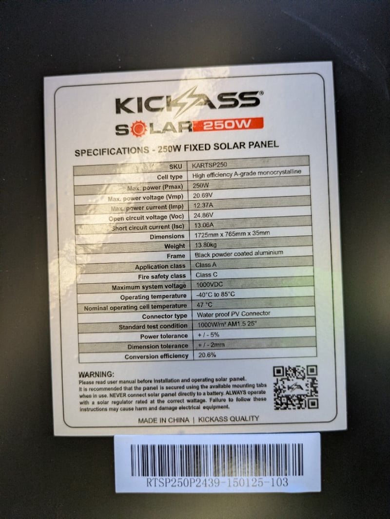 12V 250W Ultra Slim Fixed Glass Solar Panel