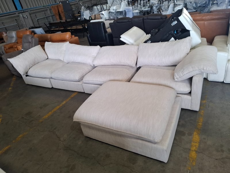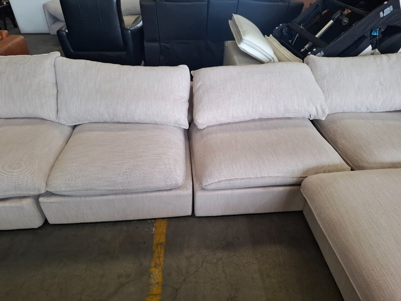 4 seats sand colour fabric upholstery suiteDimensions: 400cm( W)x 190cm (D) x 75cm( H)