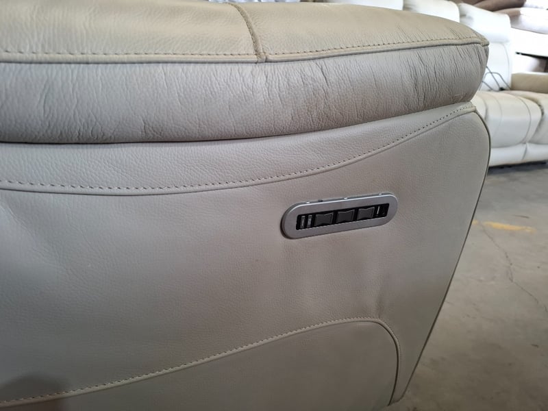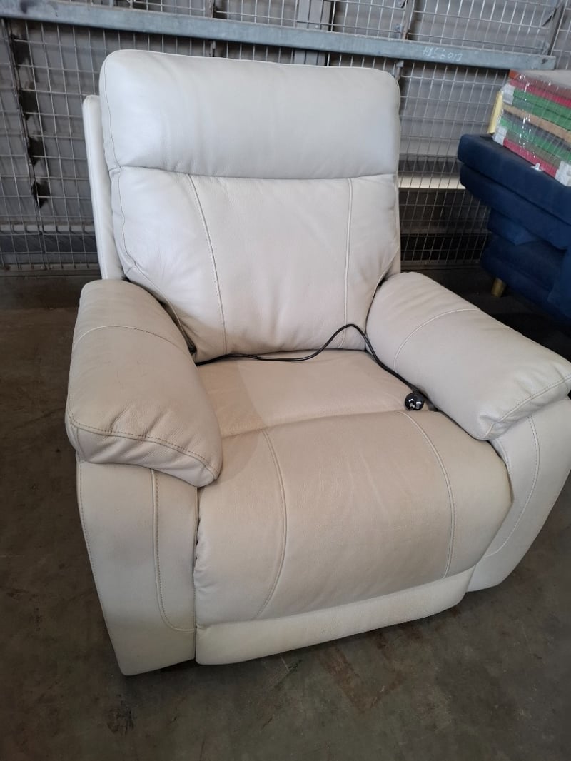 Electric recliner, beige colour leather style Dimensions: 94cm ( W)x 90cm ( D) x107cm (H) Note: Cleaning required