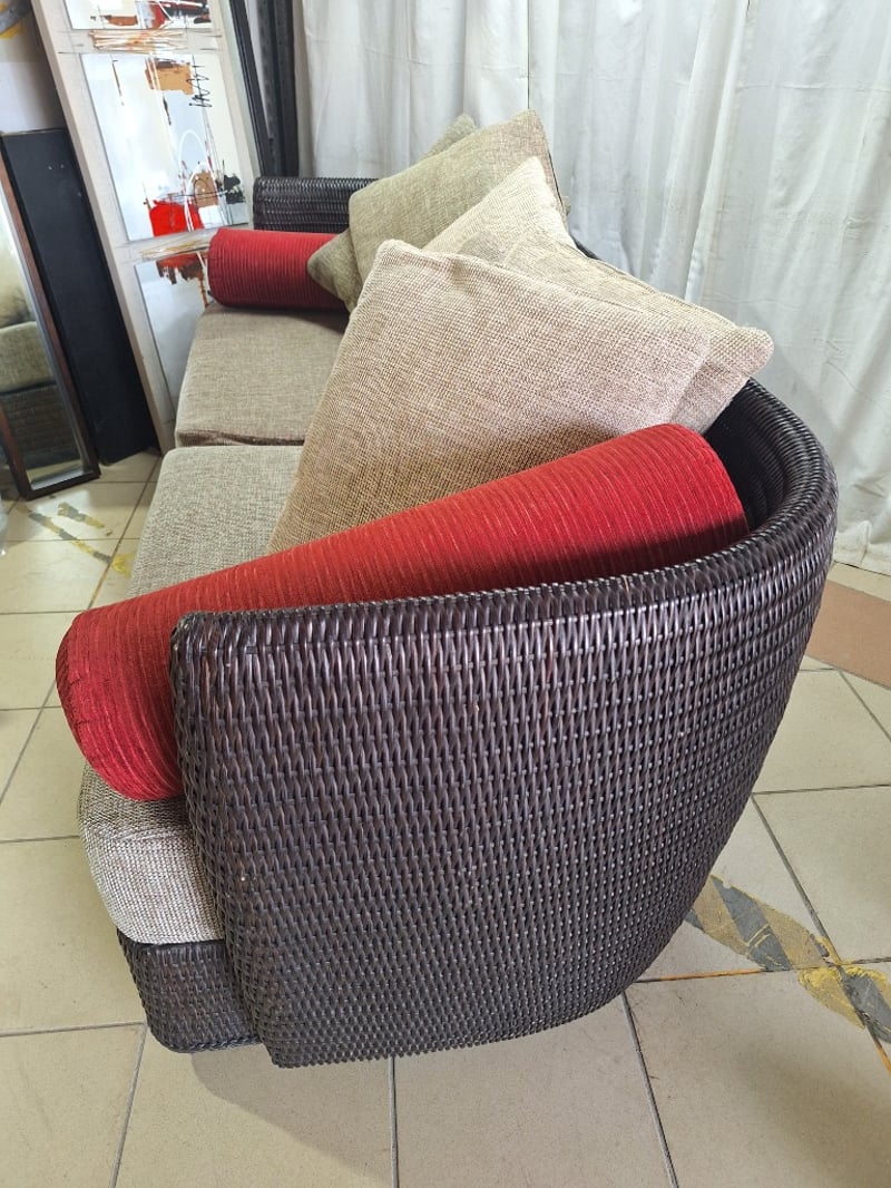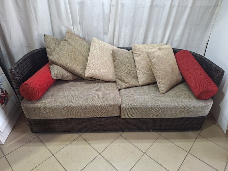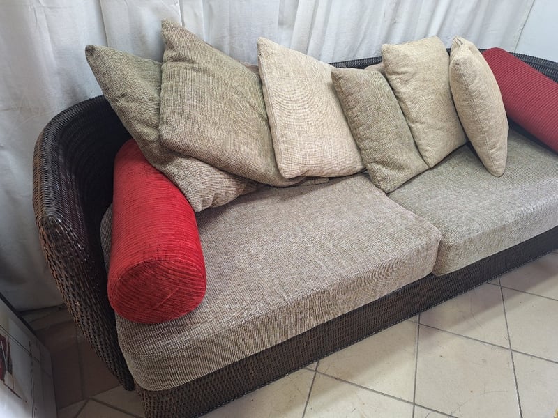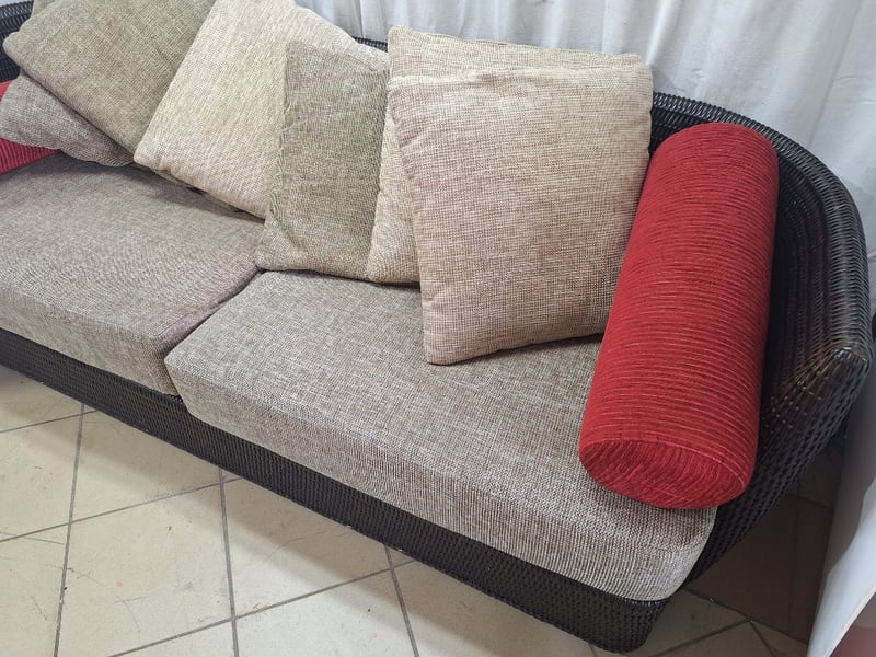 Outdoor Sofa With Cushions, Rattan Style, Brown Finish