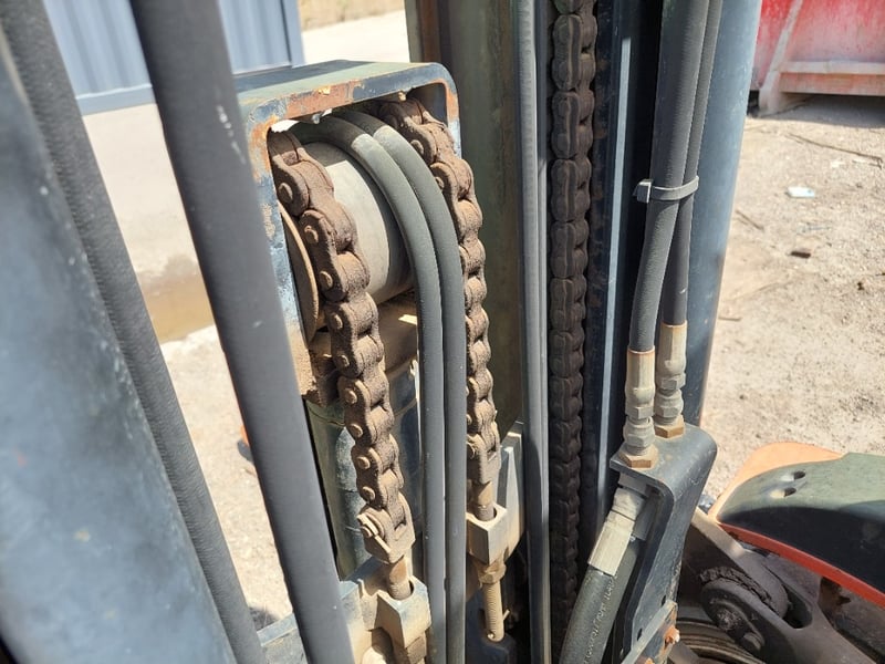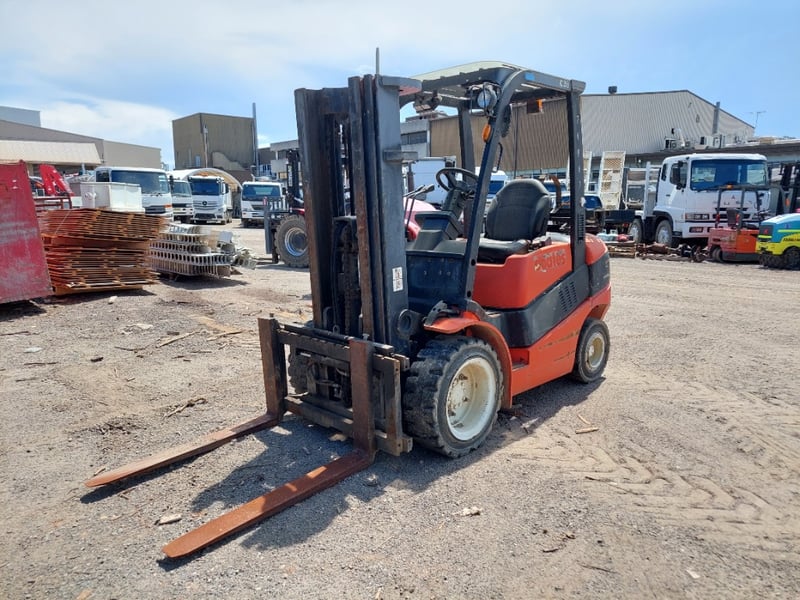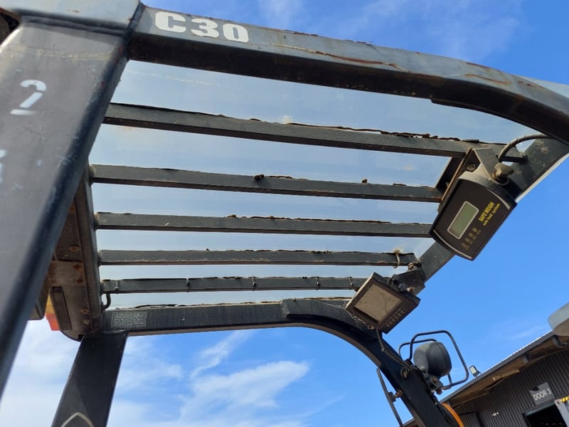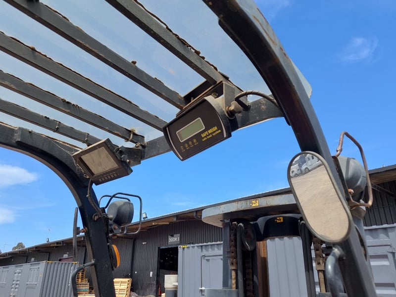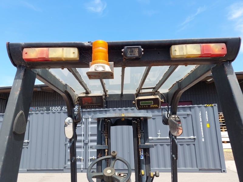 Extras: 3-stage clearview container mast, side-shift, 6°/5° tilt, solid tyres, Safe Weigh LCD digital load system, light pack including beacon