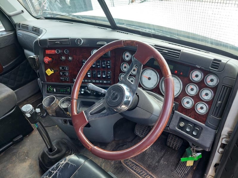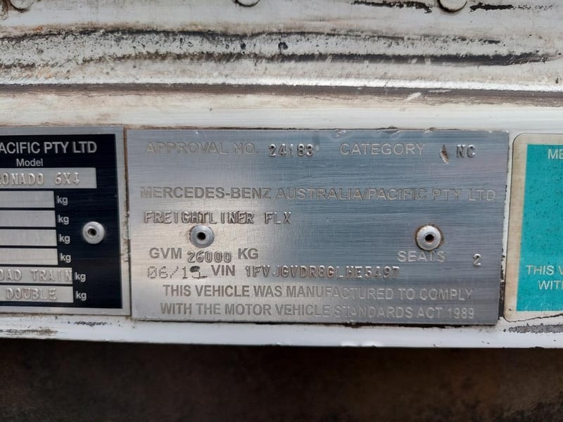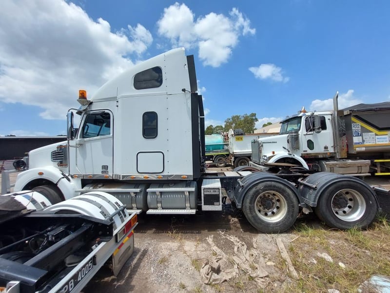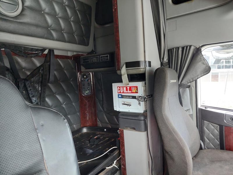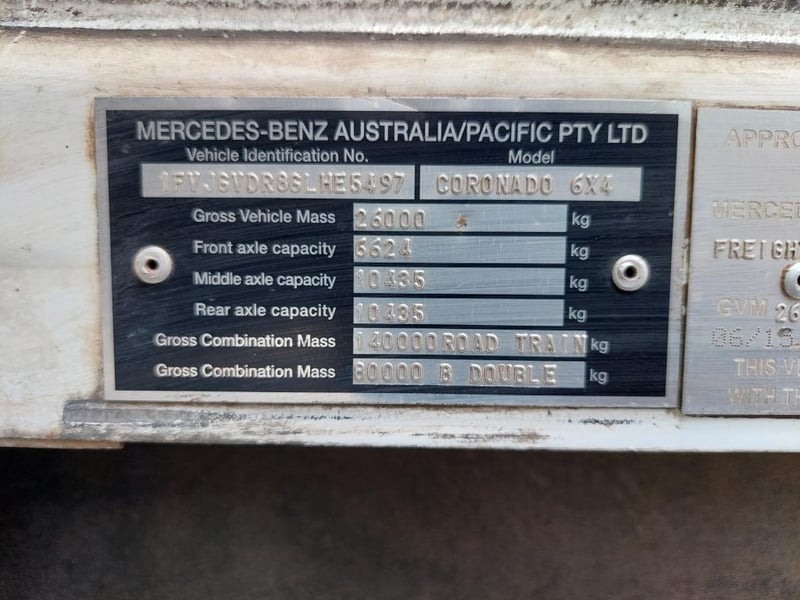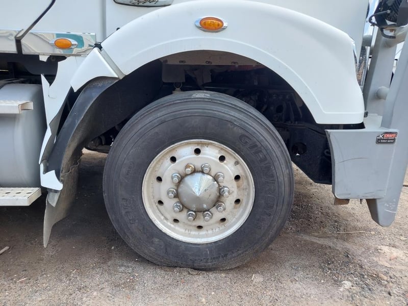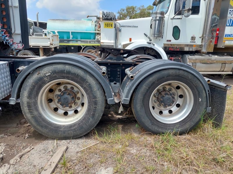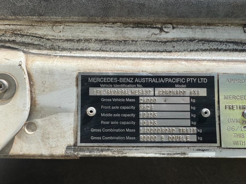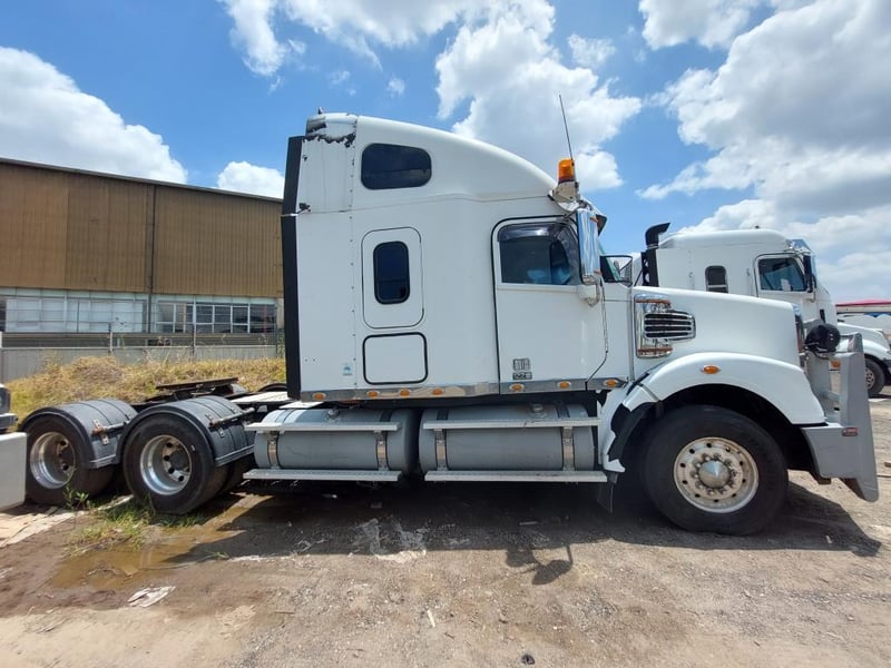 Description/extras: Tail shaft disconnected, does not build air. Holland airbag suspension, bonneted sleeper cabin with Icepack 2000-S air conditioning system, disc alloy rims, 3x 454L stainless steel diesel tanks, 1x 303L stainless steel diesel tank, stainless steel water tank, K-Hitch hitch, aero kit, K Craft painted bull bar with Kings LED driving lights, beacons