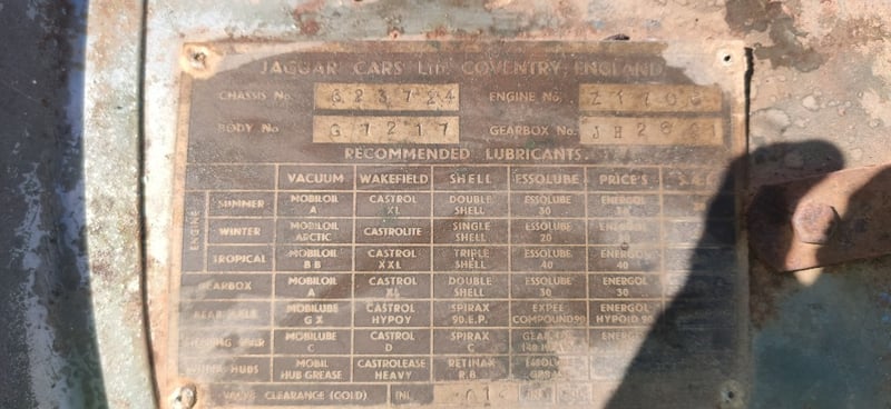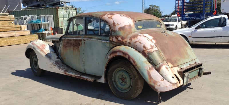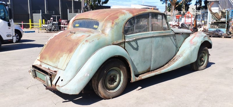 Circa 1950s Jaguar Saloon Mark V (Barn Find) Year: Circa 1950s Make: Jaguar Model: Saloon Mark V Engine: 6cyl petrol Description: Barn find, no keys, engine condition unknown, parts included, Inspection highly recommended. Engine no: Z1706 VIN: 623724 #CC