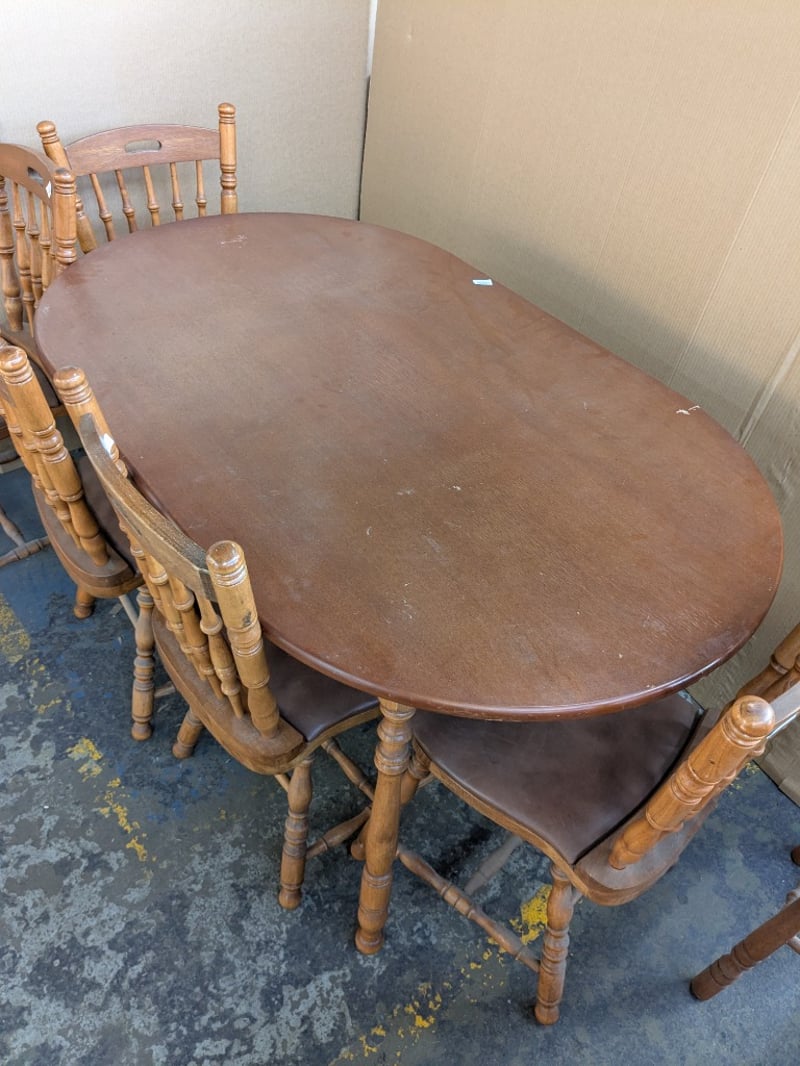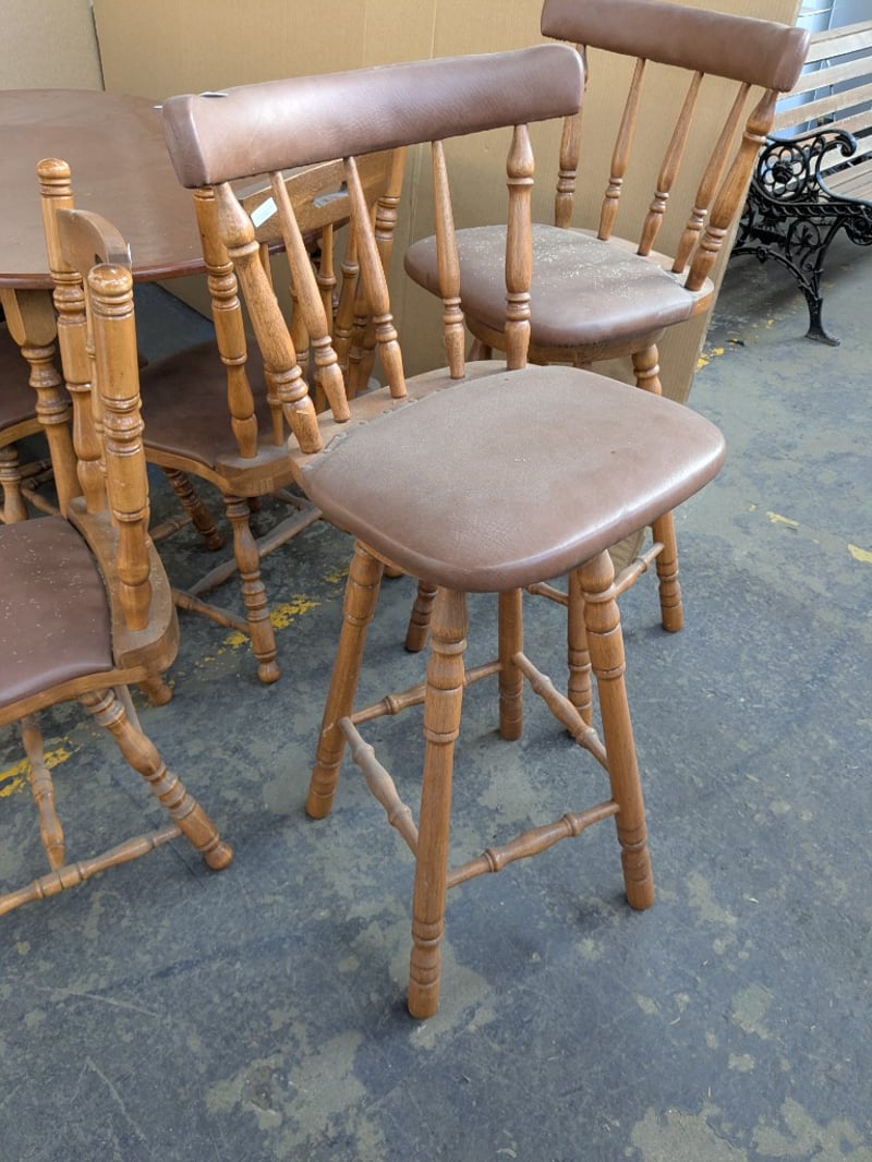 Furniture, including dining table with 6 x dining chair and 2 x bar stools Dimensions table 75cm H x 89cm W x 148cm D Sold as lot