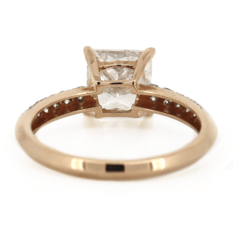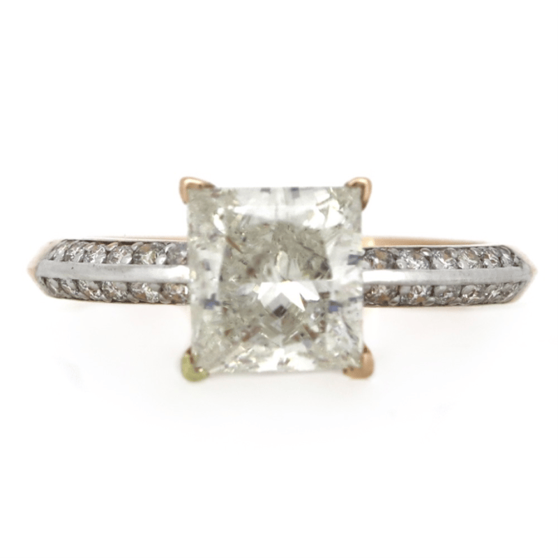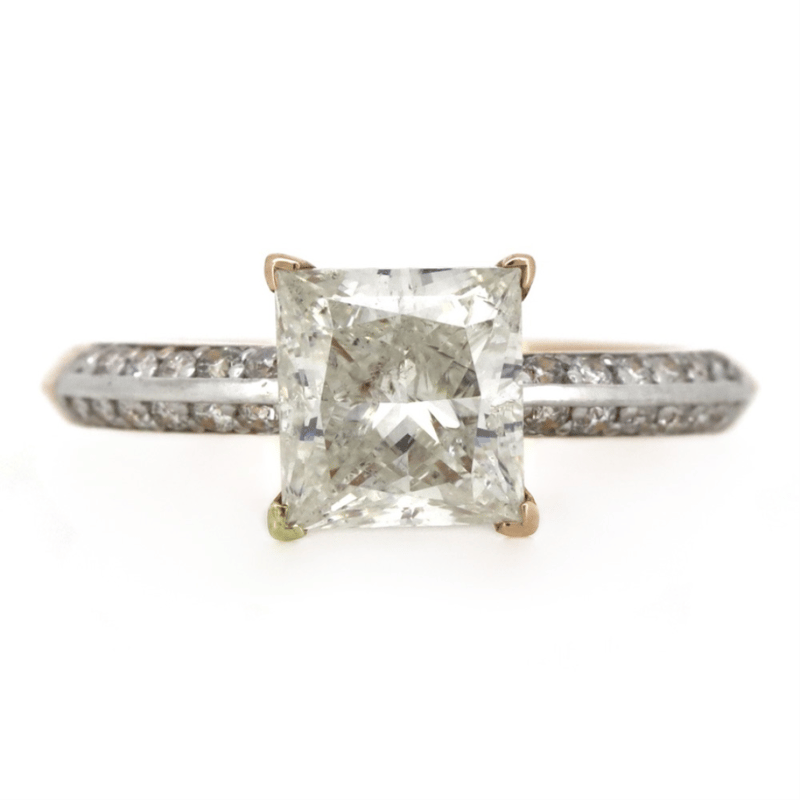 The Centre Features, One Princess Cut, Diamond (2.15Ct, K-L Colour, P1 Clarity), 4 Claw Set. Decorating The Band Are, 24 Round Brilliant Cut, Diamonds (0.12Ct Tdw, J-K Colour, Si1-P1 Clarity), Bead Set. Ring Size M.