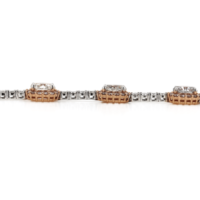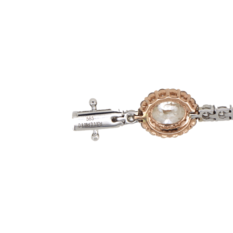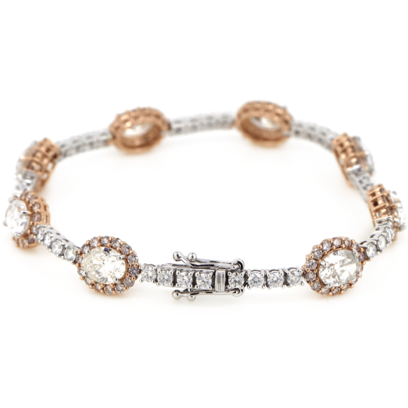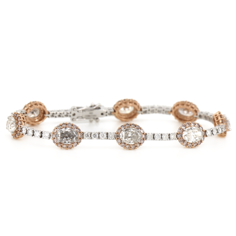 The Design Features, 8 Oval Cut, Diamonds (7.98Ct Tdw, F-I Colour, Si-I2 Clarity), 4 Claw Set. Accompanied By, 112 Round Brilliant Cut, Fancy Purplish-Pink, Diamonds (2.55Ct Tdw, Si Clarity), And 36 Round Brilliant Cut, Diamonds (1.80Ct Tdw, J-K Colour, Si Clarity), Individually Beaded Bezel Set. The Bracelet Has A Box Snap With A Double Figure '8' Safety Latch. The Bracelet Length Is 18.5Cm.