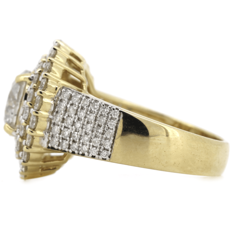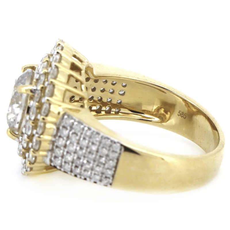 14K YELLOW GOLD AND DIAMOND, HALO CLUSTER RING.