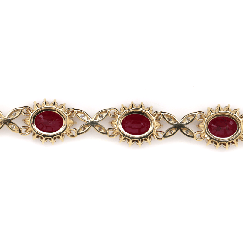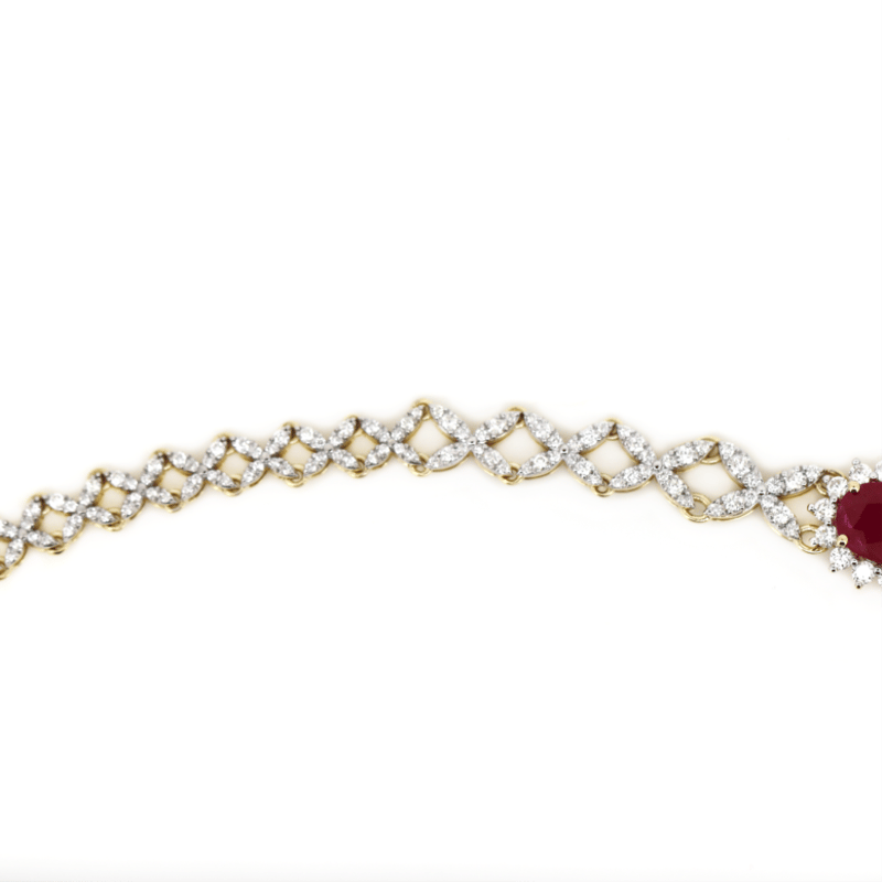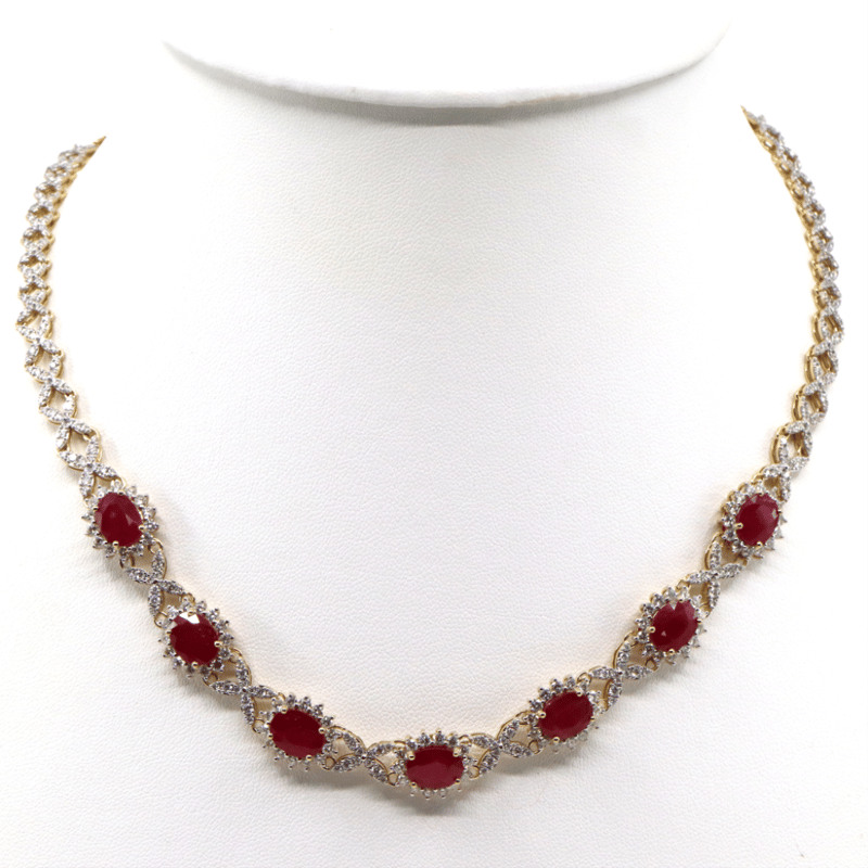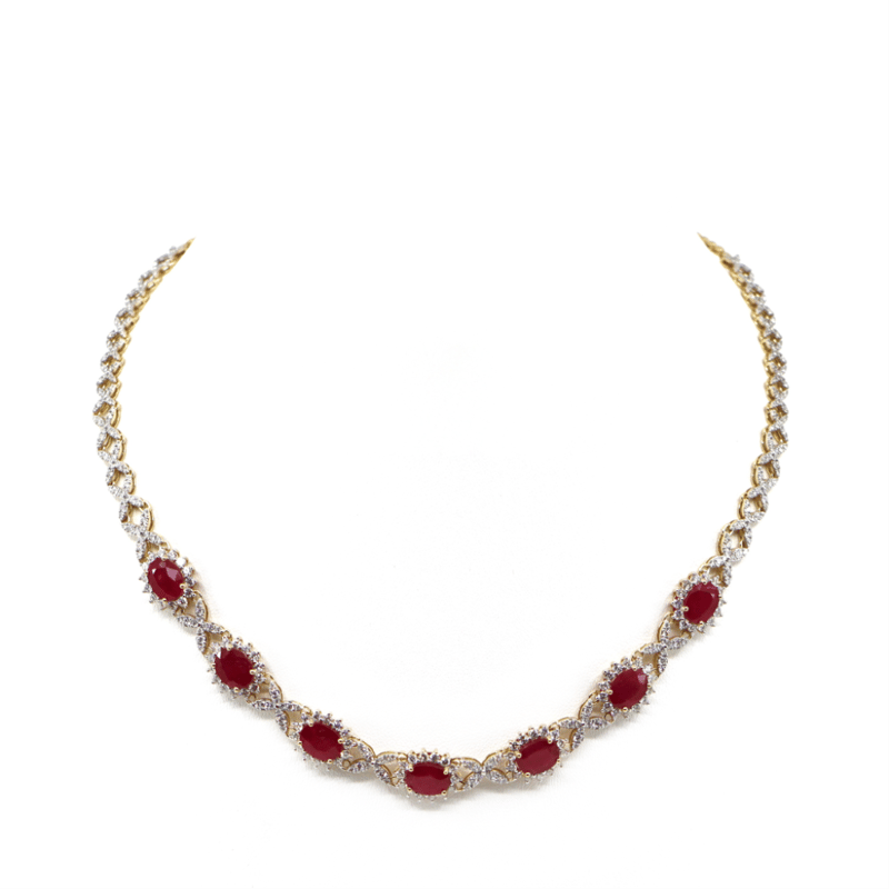 The Design Features, 7 Oval Mixed Cut, Medium-Dark Pinkish-Red, Rubies (14.66Ct Tsw, Heavy Surface Reaching Inclusions), Claw Set. Encompassing The Design Are, 396 Round Brilliant Cut, Diamonds (5.75Ct Tdw, G-H Colour, Si-I2 Clarity), Claw Set. Length Of The Necklace Is 42.5Cm.