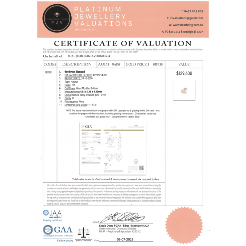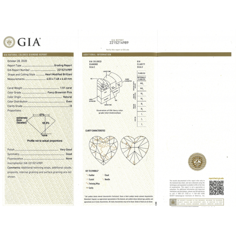 Heart Modified Brilliant Cut, Fancy Brownish-Pink, I3 Clarity, Loose, Unset. Stone Comes Sealed With Gia Report: 2215214989.