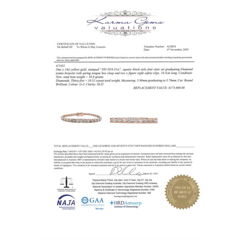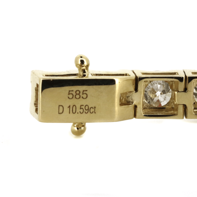 The Design Features, 35 Graduating Round Brilliant Cut, Diamonds (10.51Ct Tdw, G-J Colour, Si-I2 Clarity), Block Set In A Single Row. The Bracelet Has A Box Lock With 2 'Figure 8' Safety Catches. Bracelet Length Is 18.5Cm.