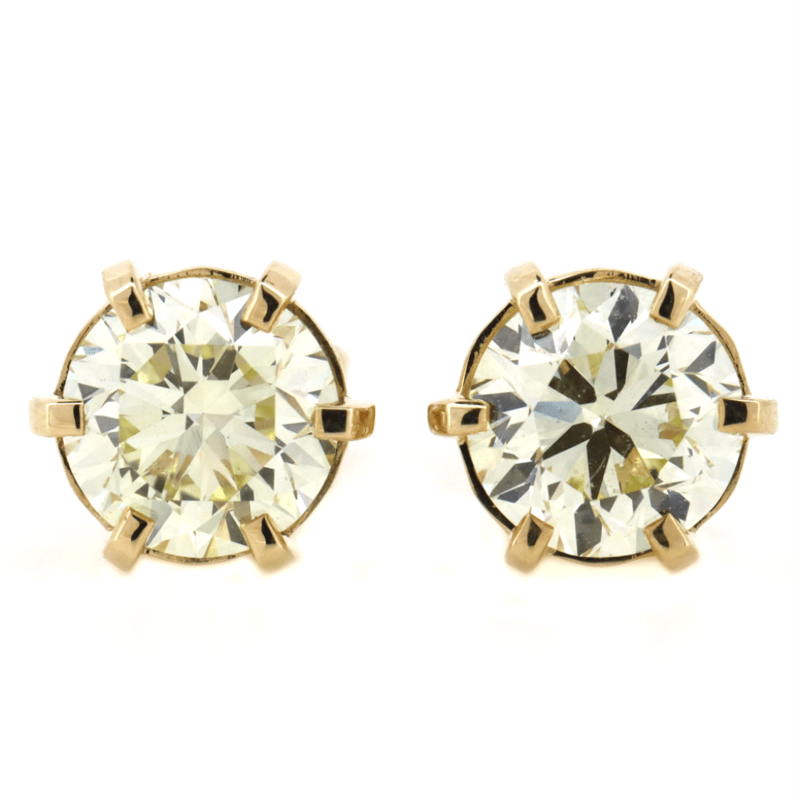 14K YELLOW GOLD, 3.22CT TDW FANCY YELLOW DIAMOND, SOLITAIRE STUD EARRINGS.