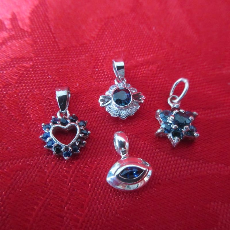 Estate (4) x Sterling Silver & Sapphire Pendants (