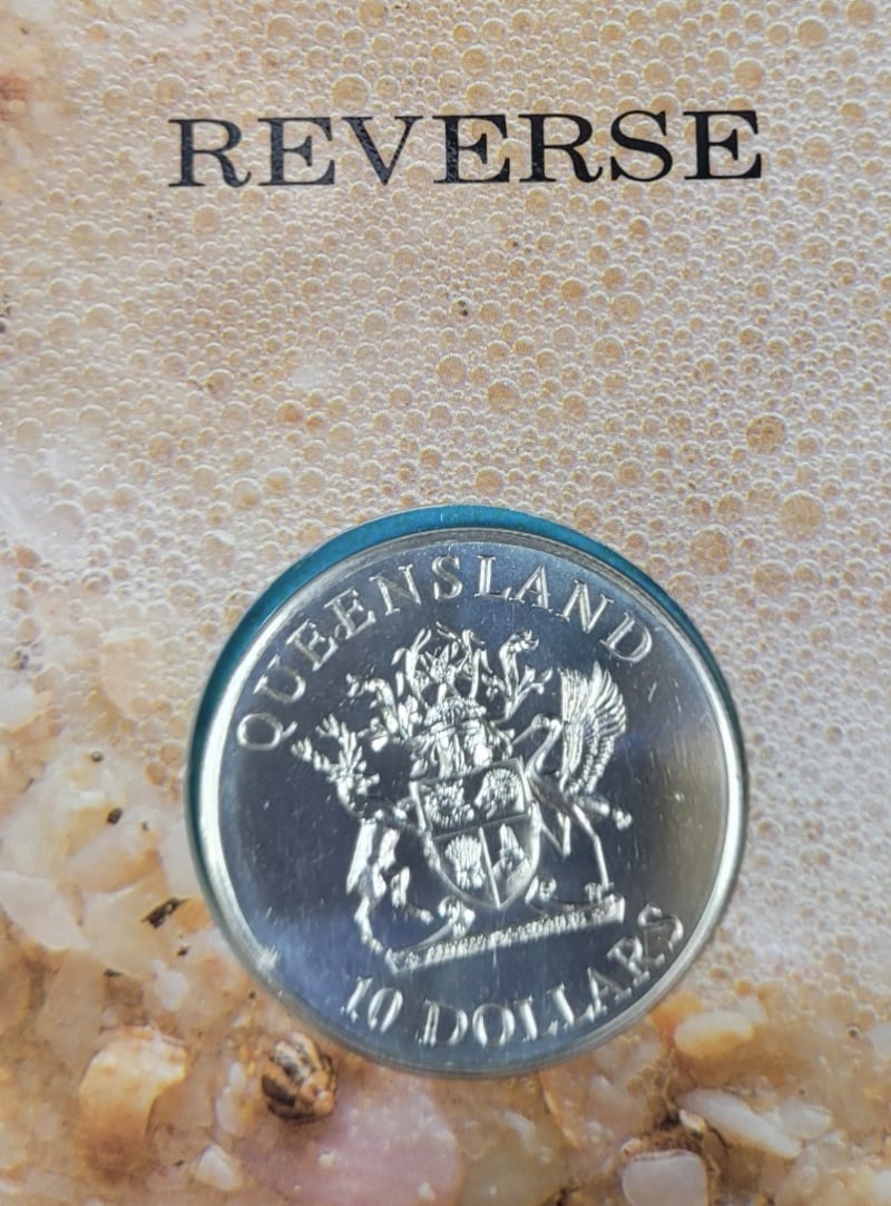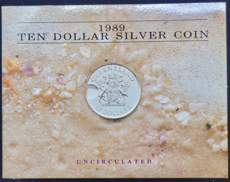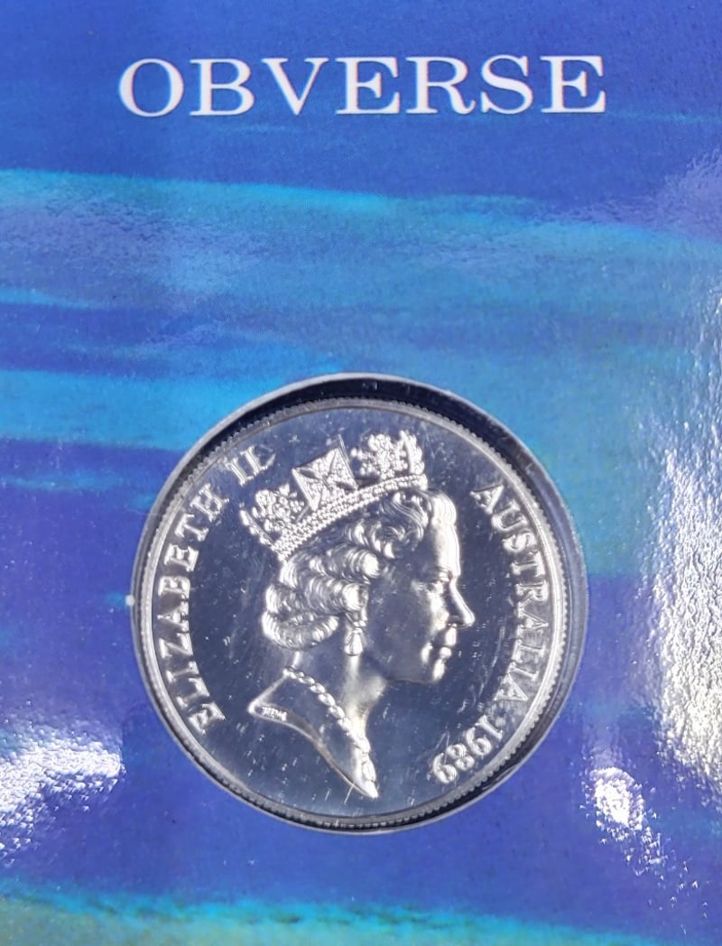 AUSTRALIAN COINS IN COLLECTORS CARD1989 Ten Dollar Silver Coin Uncirculated587972+8