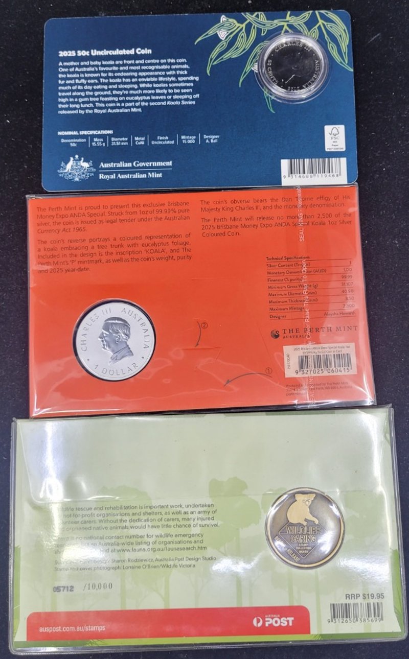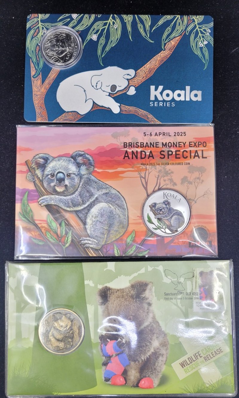 Koala 2025 1Oz Silver Coloured Coin, 2025 50C Uncirculated Coin Koala Series