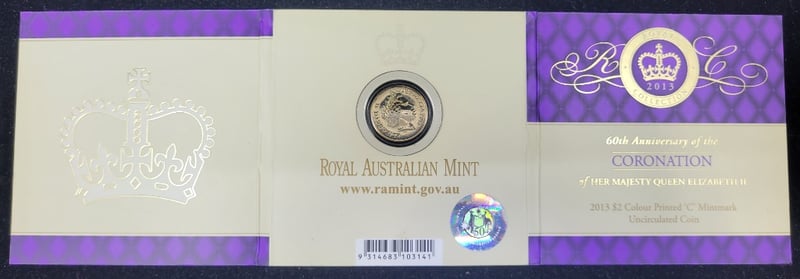 60Th Anniversary Coronation Of Her Majesty Queen Elizabeth Ii 2013 $2 Color Printed 'C' Mintmark Uncirculated Coin
