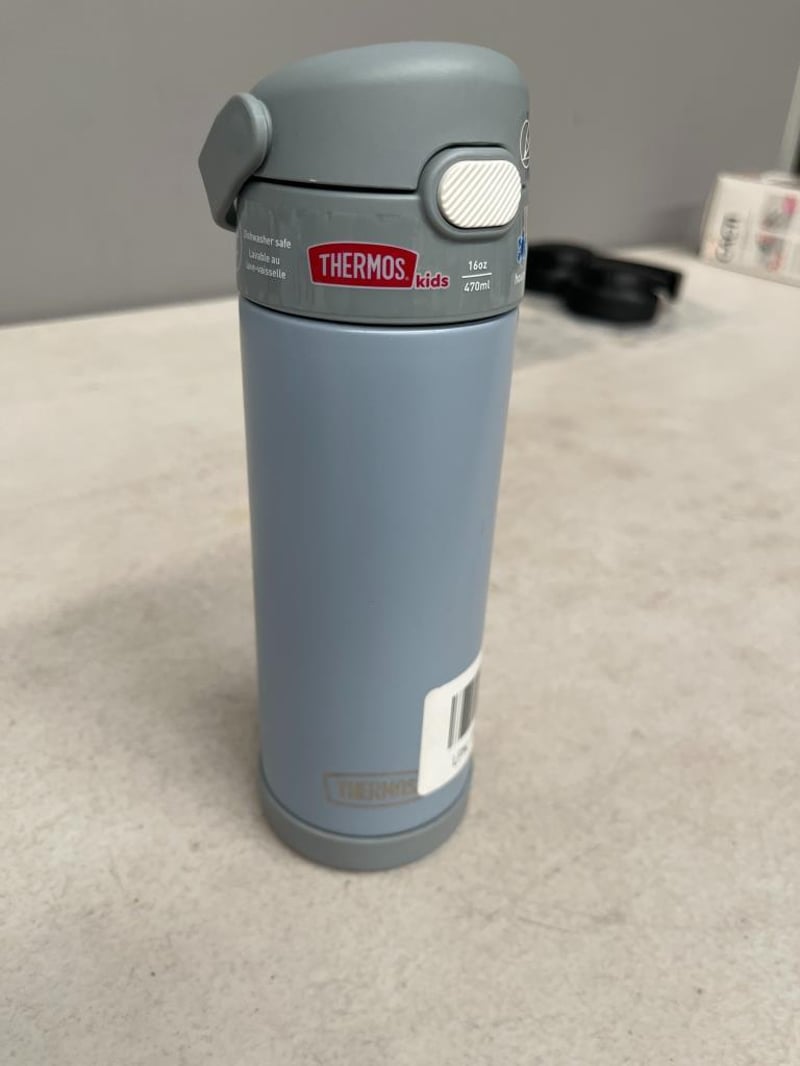 THERMOS FUNTAINER 16 Ounce Stainless Steel Vacuum Insulated Bottle with Wide Spout Lid - Blue/Grey - REFURBISHED WORKING AS NEW CONDITION