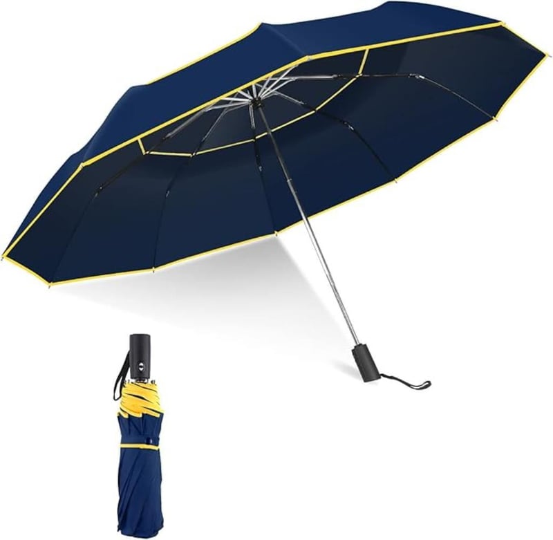 Kalolary 62 Inch Golf Umbrella Auto Open Windproof Large Double Canopy - Blue/Yellow - REFURBISHED WORKING AS NEW CONDITION