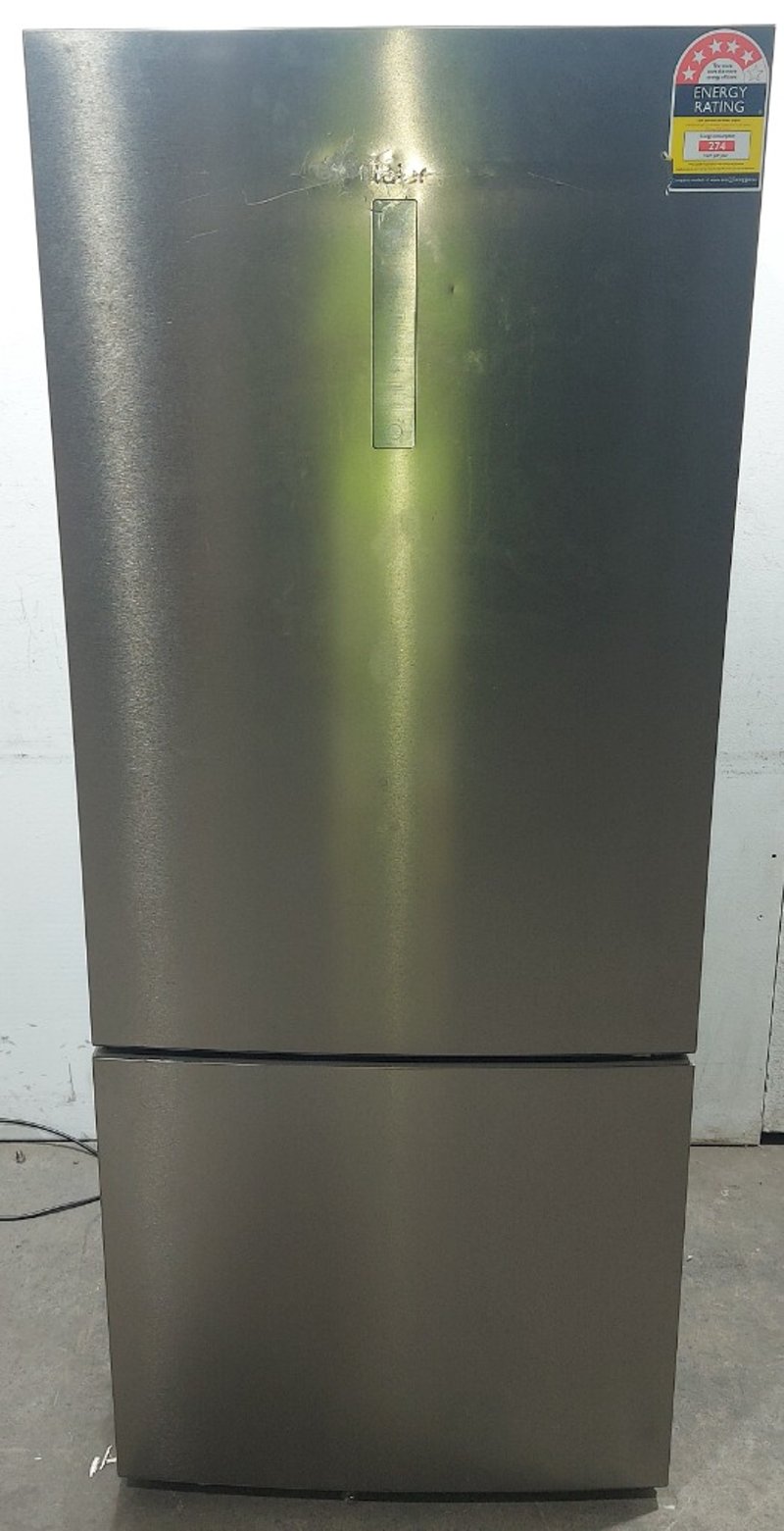 Haier Refrigerator and freezer, stainless steel. Dims: 182 H, 70 D, 63 W Model no : HRF450BS2 Serial no: BJOWLOEAA00BDN3T0051 Notes: item untested and signs of wear.