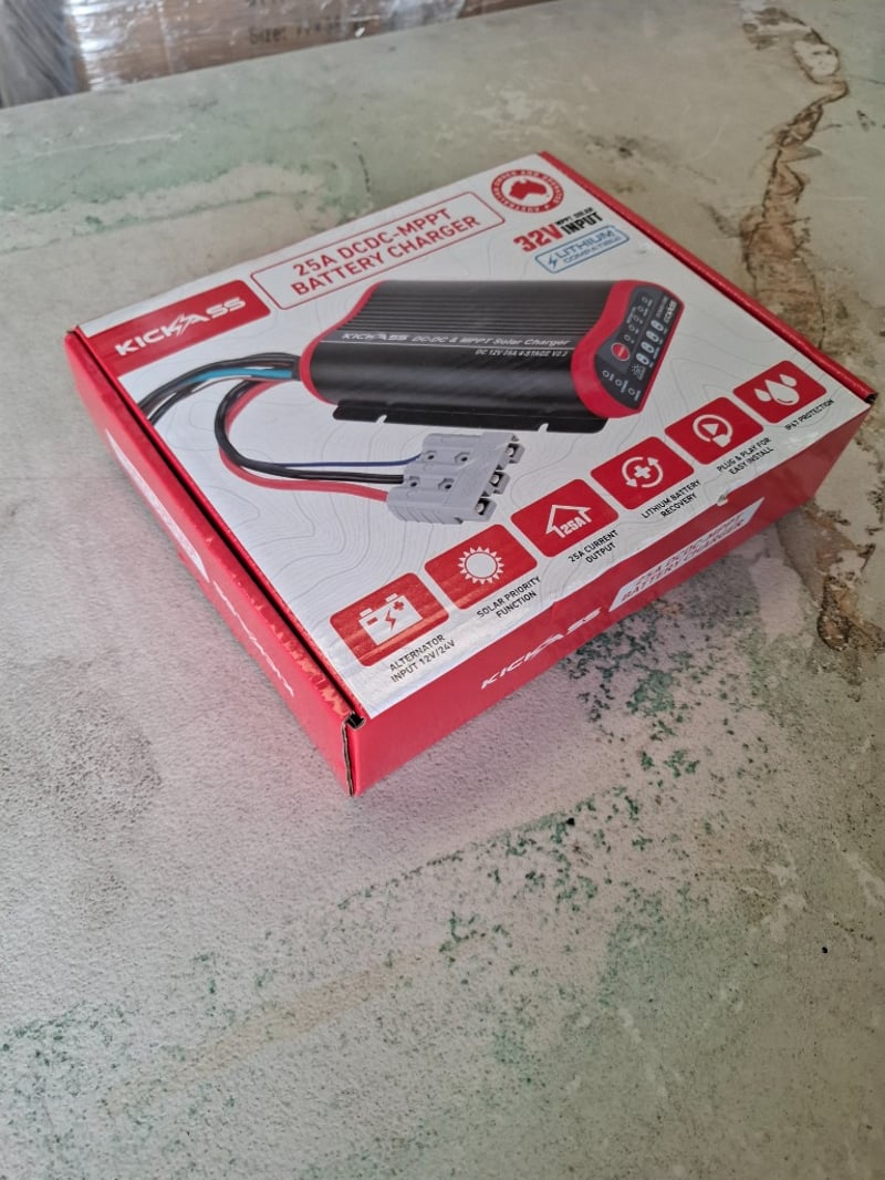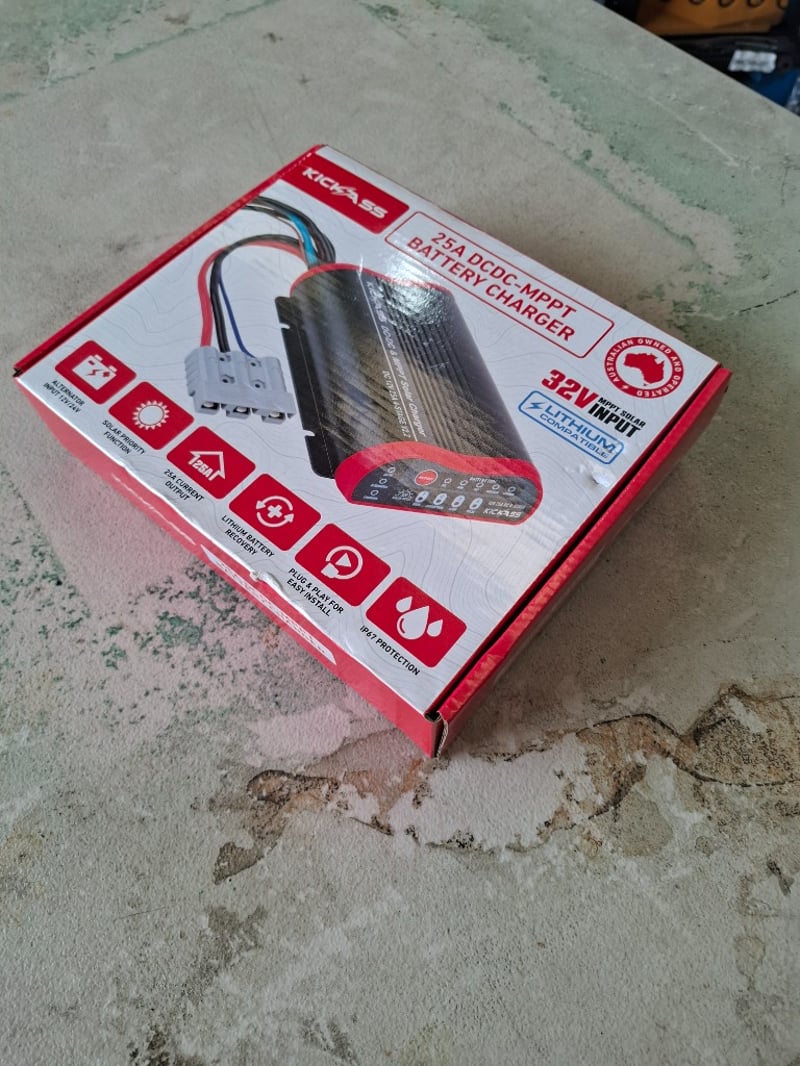 DCDC, with the 3-pin Anderson connector. Dust and waterproof, compatible with lithium. Ideal for small to medium batteries.