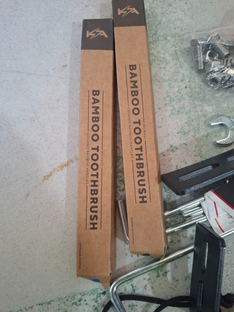 Assorted items including Glowtoys American football, bamboo toothbrushes and more.