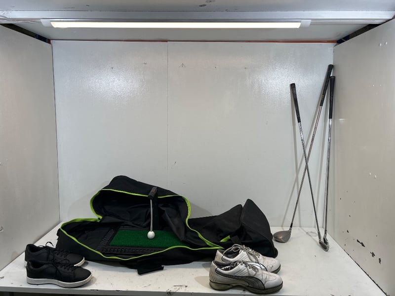 Assorted items includes, shoes, golf putting practice mat, golf club, brands include, callaway,cellSold as lot